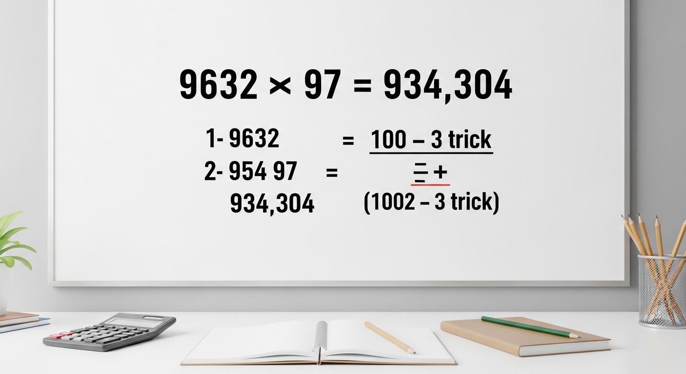 However, it’s a good idea to first try solving it manually using the shortcut method (9632 × 100 − 9632 × 3). This helps improve your calculation speed and reduces dependency on calculators, especially in exams or situations where one isn’t available.